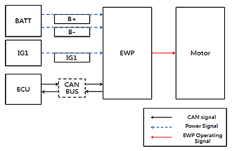• EWP(Electronic Water Pump) water pump composed of a BLDC motor and a controller that drives it. It is applied to electric vehicles and fuel cell vehicles, and cooling devices such as electronic components, batteries and fuel cell stack