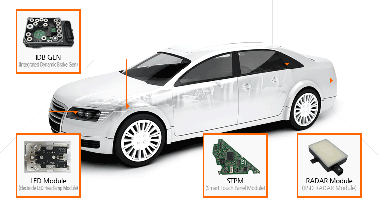•IDB GEN2 ECU An integrated electronic brake that generates braking pressure by directly driving a pressure piston with a motor, replacing the existing vacuum booster and including all functions of ESC (body control system).